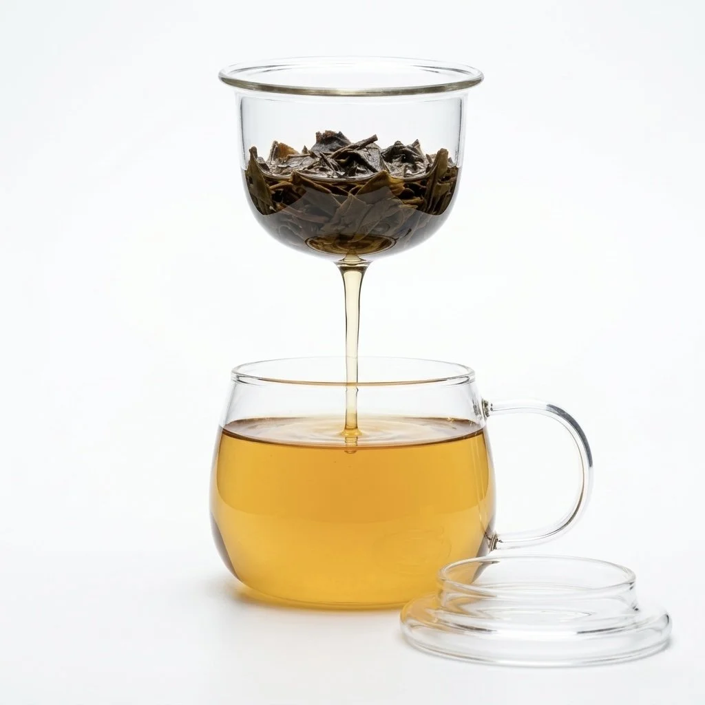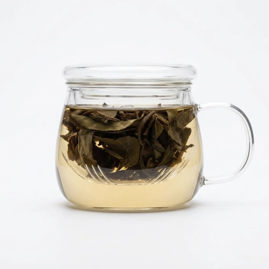 A beautifully thought out solution to single cup loose leaf tea brewing. Simply put your leaves in the upper all glass strainer, pour in your hot water, cover with the included glass lid and let it steep.